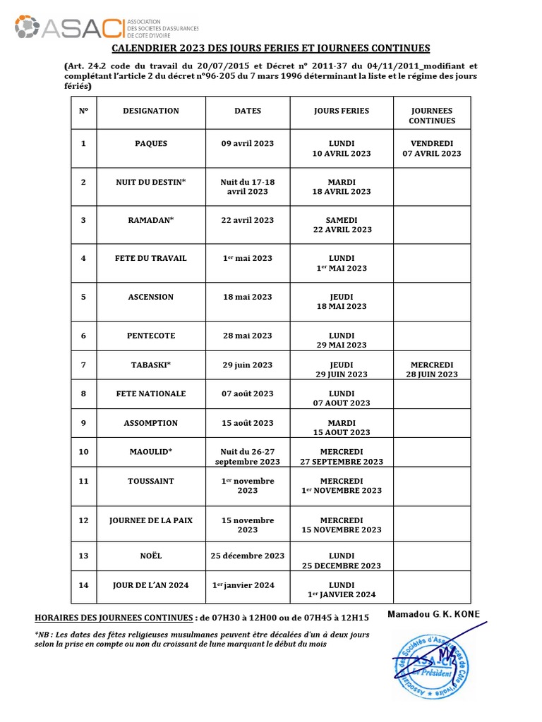 Calendrier 2023 Des Jours Feries Asaci | PDF | Vacances