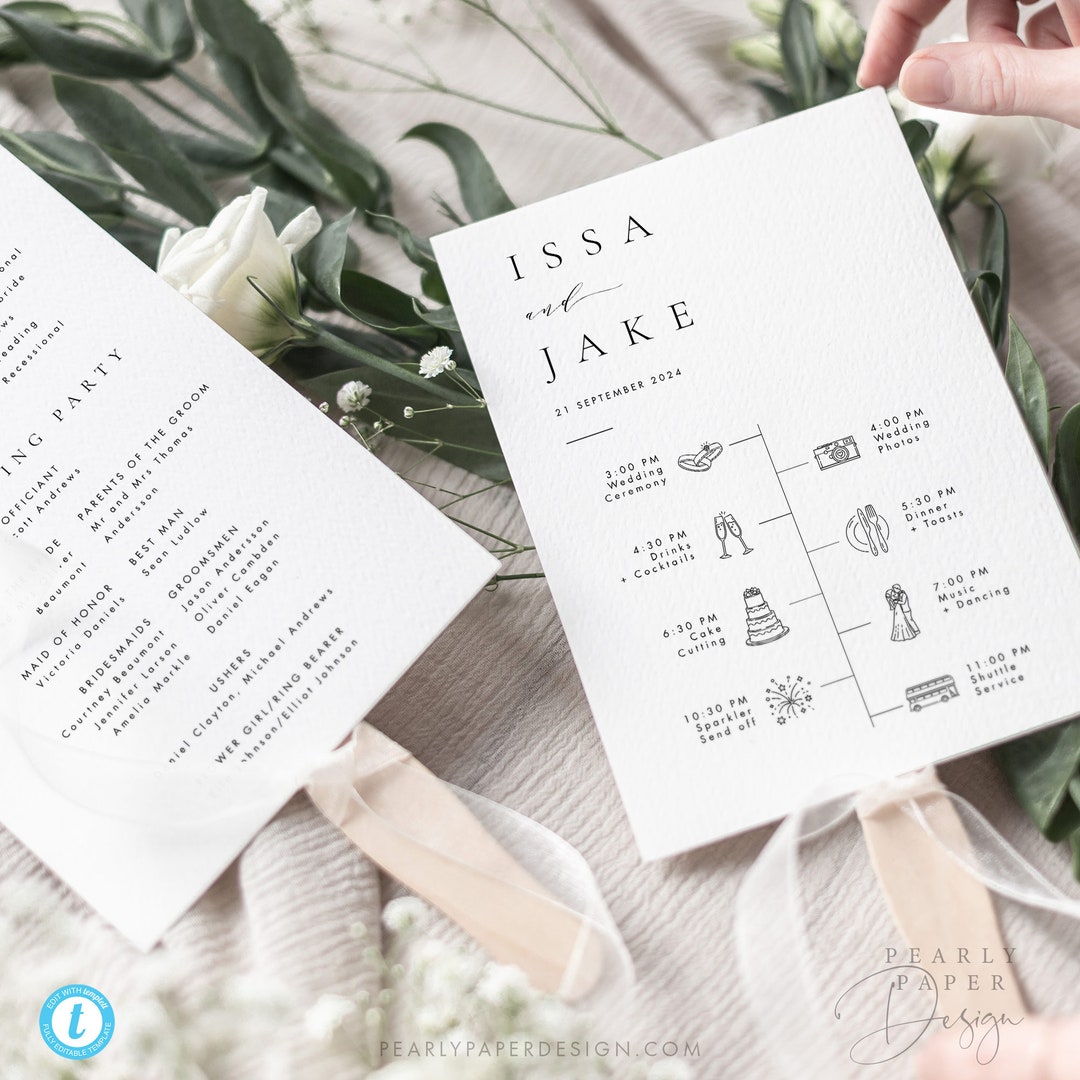 Wedding Day Timeline Card Template Download Modern Minimalist Etsy