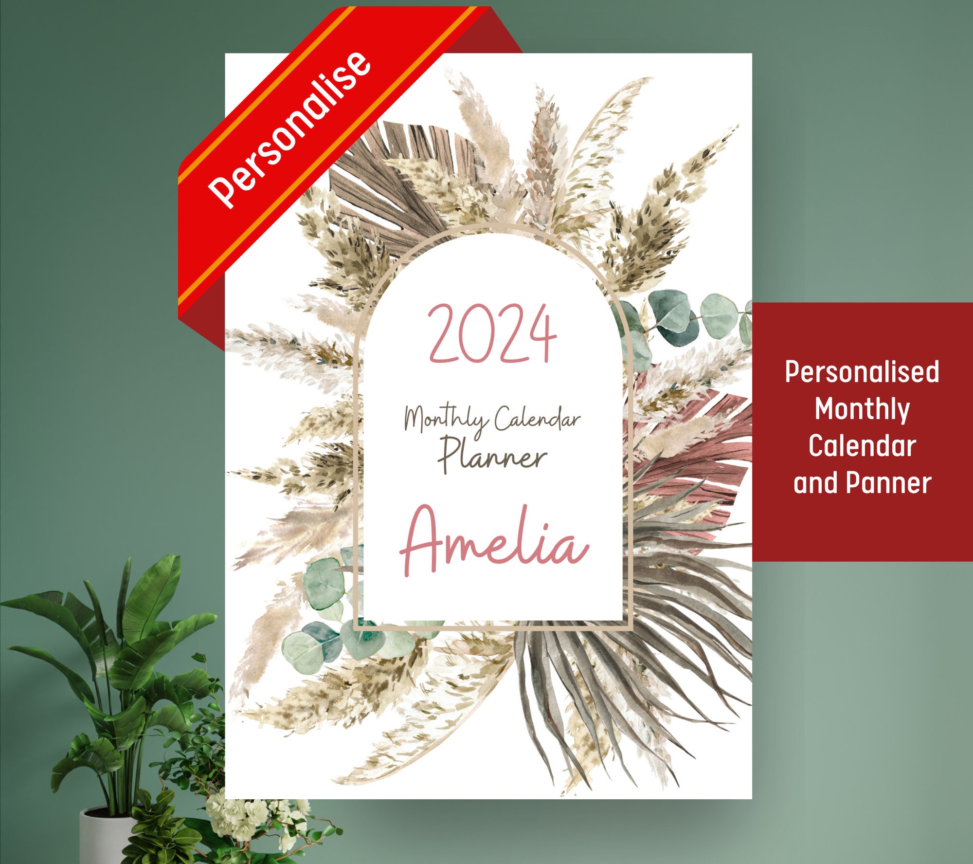 Wall Calendar Download Personalised Calendar 2024 Pampas Etsy
